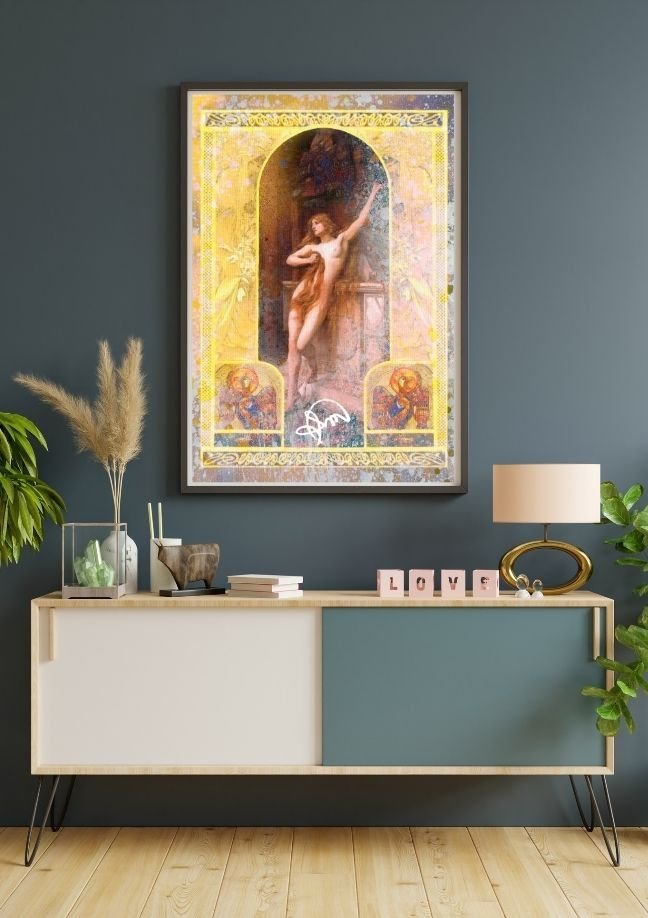 A interação de luz e sombra adiciona profundidade e mistério, enquanto o ambiente sugere um espaço de conexão espiritual. Esta pintura é um convite à introspecção e um testemunho da beleza intrínseca da simplicidade.